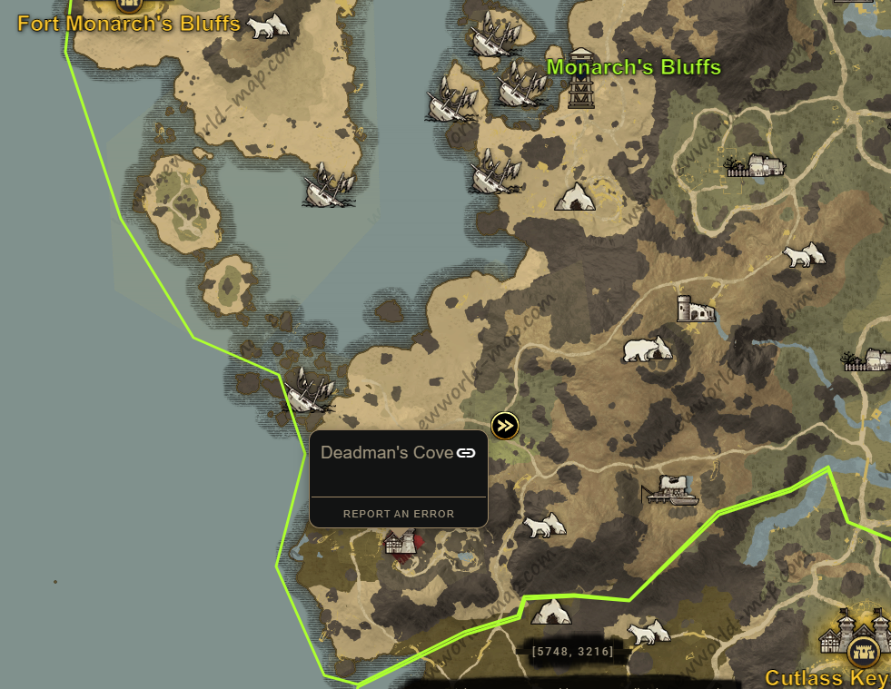 - The 2nd way is to grind the overland dungeons. - These are essentially dungeons that have elite mobs and are not instanced. The first one is Deadman’s cove in the southwest part of Monarch’s Bluffs. This will be the one of the fastest ways to level your weapons and your character. There is at least a dungeon or an overland dungeon in each zone, so make sure to go to each one to grind out your levels.